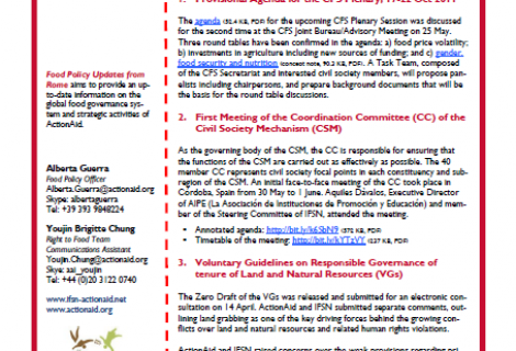 Food Policy Updates from Rome aims to provide an up-to-date information on the global food governance system and strategic activities of ActionAid.