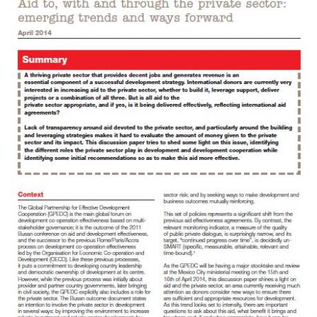 Aid to, with and through the private sector: emerging trends and ways forward