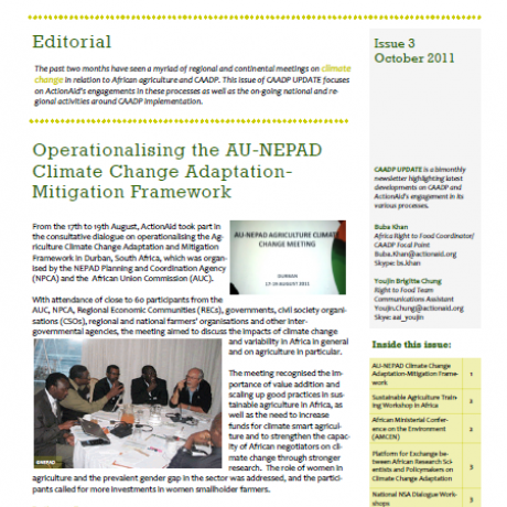 CAADP UPDATE, produced by the International Right to Food Team, highlights key events and issues around agricultural discourse in Africa, to update countries on ActionAid’s engagement in the CAADP