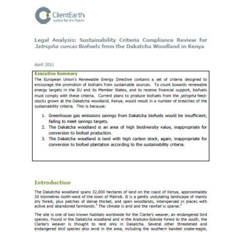 Sustainability Criteria Review for Jatropha Biofuels from Dakatcha Woodland in Kenya