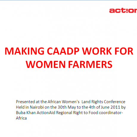 This is a presentation given by Buba Khan, ActionAid International's Africa Right to Food Coordinator, at the African Women's  Land Rights Conference, held in Nairobi on the 30th May to the 4th of