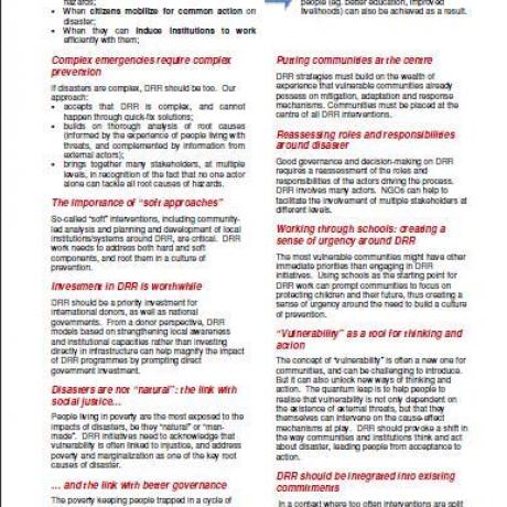 Six one page briefs outlining the key aspects of ActionAid's approach to Disaster Risk Reduction through schools.  The briefs come from ActionAid's DFID-funded Disaster Risk Reduction through Schools