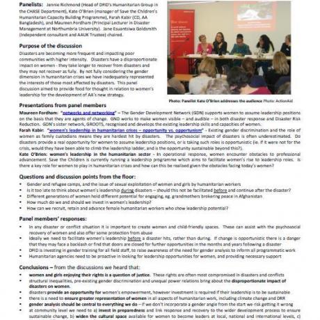 A communique from ActionAid's panel discussion on women's leadership - with contributions from panellists from DFID, Save the Children and Northumbria University. The event discussed the importance of
