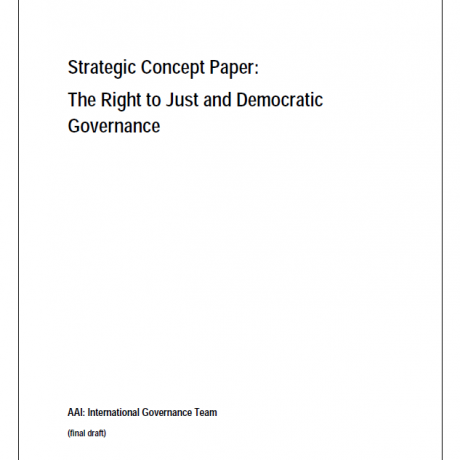 This document clarifies AA’s International Governance Team’s (IGT) approach to the theme ‘Just and Democratic Governance’. It builds on the Strategic Plan 2006-2010 and anticipates issues that will be